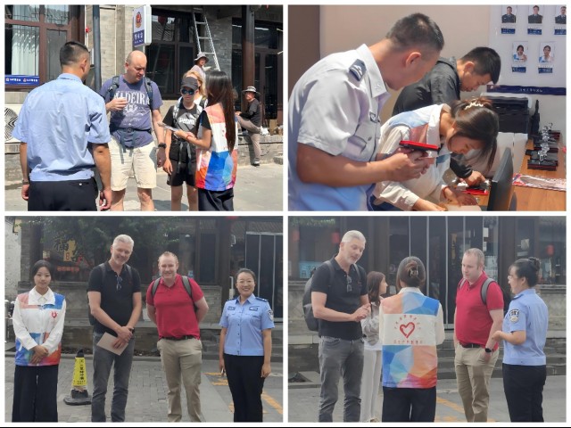 志愿期间,团队同步关注基层涉外服务需求,针对古城警务工作站民警执勤中遇到的沟通难题,量身定制“警务英语”培训课程。课程聚焦身份核验、景点问询、紧急救助等高频场景,通过情景模拟、实用对话演练等方式提升民警涉外服务能力。同时,成员们还为外国游客交流帮助提供了更直接的支持。他们在古城内主动为外国游客解答行程规划、交通指引、文化习俗等疑问,用高效的沟通让外国游客感受到贴心与安心,切实为古城的国际化服务体系添砖加瓦。