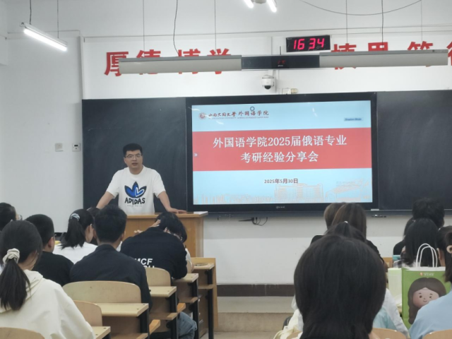为切实提升俄语系学生考研成功率,帮助其明确备考方向、掌握科学复习方法,5月30日下午,外国语学院俄语专业在行知楼107教室举办2025届俄语专业考研经验分享会。会议由俄日系主任任斐主持,俄语专业全体学生参加。