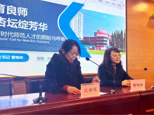 2025年12月29日,山西省教学名师、大同市外国语学校党总支书记曹艳玲应邀来到山西大同大学外国语学院,以“今日苗圃育良师 明日杏坛绽芳华”为题作专题讲座。学院英语专业师范生参加活动,副院长王金花主持。