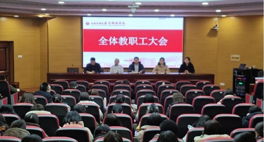 为进一步统一思想、凝聚共识,为学院高质量发展夯实基础,近日,外国语学院教职工大会在行知楼0230会议室召开。学院领导班子、教职工参加会议。会议由院长张晓世主持。