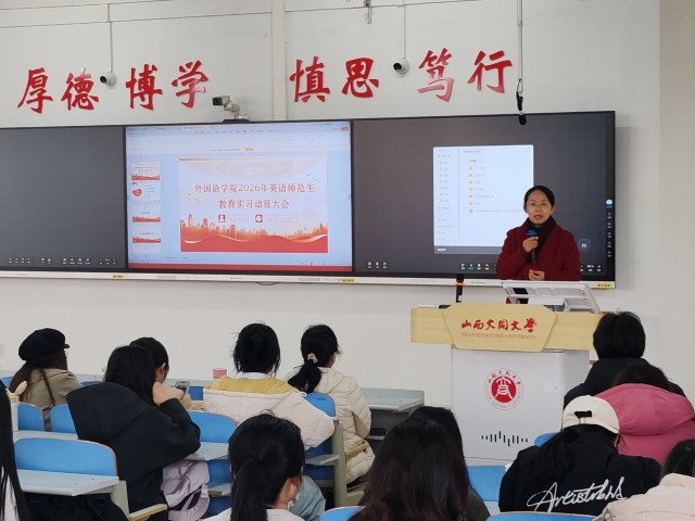 为扎实推进2023级英语专业师范生教育实习工作,外国语学院于3月16日召开2023级英语教育实习动员大会。院长张晓世、实习指导教师及2023级全体实习生参加会议,副院长王金花主持会议。